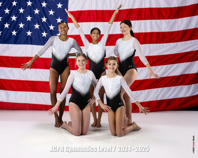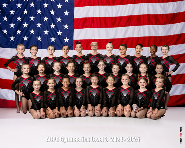 ACPR Gymnastics competition team program was first developed in 1978, making ACPR one of the oldest continuous team programs in Maryland. Presently, ACPR Gymnasts compete at USA Gymnastics Age Group levels 3-10, and USA Gymnastics XCEL Levels Silver through Diamond. In 2024-2025, ACPR had 128 Gymnasts competing in USA Gymnastics Sanctioned competitions. Below are the team photos for 2024-25 competitive year.
